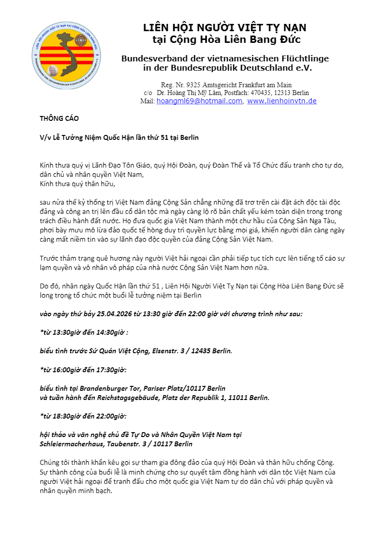 tuyên bố quan điểm) trước truyền thông, các tổ chức, các cấp chính quyền Đức và Việt