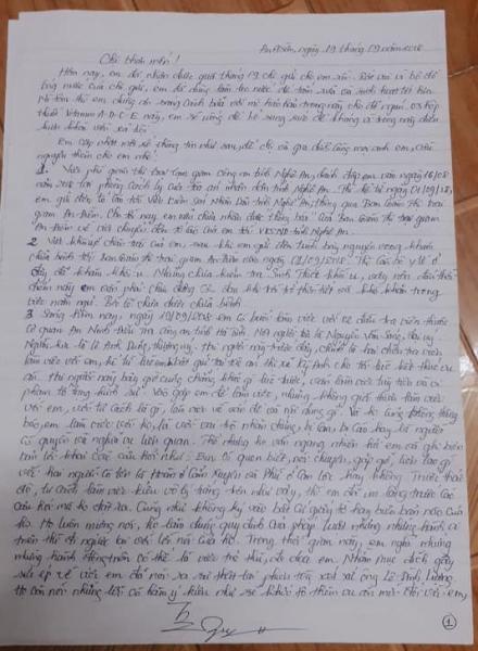 Hôm nay được sự đồng ý của gia đình Nguyễn Văn Hoá, tôi xin công bố bức thư mới nhất đề ngày 19/9/2018 mà Hoá đã gửi về cho gia đình. Xem qua bức thư sẽ giúp nhiều người hình dung được những khổ ải mà một tù nhân lương tâm sẽ phải nếm trải và vượt qua.