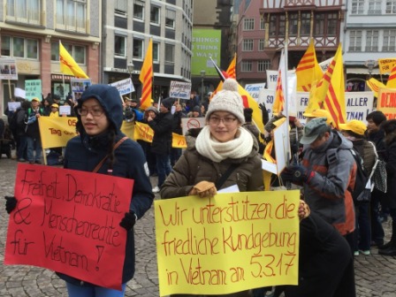 Đồng bào từ khắp mọi nơi trong nước ứng hưởng ứng lời kêu gọi của Liên Hội NVTN tại CHLB Đức, đã đổ về trước Tòa -Thị Sảnh Frankfurt để tham dự biểu tình đồng hành cùng quốc nội từ 10 giờ đến 13 giờ Chủ Nhật 05.03.2017.