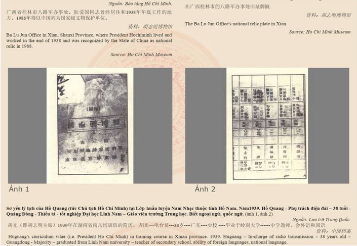 Nguyên văn tiểu sử được ghi như sau: "Sơ yếu lý lịch của Hồ Quang (tức Chủ tịch Hồ Chí Minh) tại Lớp huấn luyện Nam Nhạc thuộc tỉnh Hồ Nam. Năm1939. Hồ Quang - Phụ trách điện đài – 38 tuổi - Quảng Đông - Thiếu tá - tốt nghiệp Đại học Lĩnh Nam – Giáo viên trường Trung học. Biết ngoại ngữ, quốc ngữ."