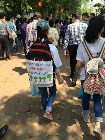 Hôm nay 12/04/2015, người Dân Hà nội xuống đường Tuần hành ôn hòa để phản đối hàng loạt cây xanh bị chặt lén lút vô ý thức