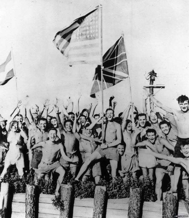 Tù binh Anh reo mừng khi Nhật Bản đầu hàng
