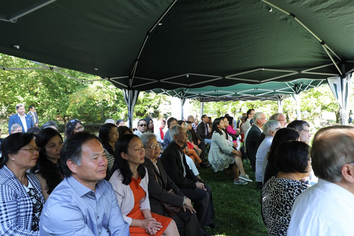Hôm nay trời vào đầu mùa thu ấm áp. Trong ánh nắng cuối hè êm dịu của buổi chiều, lúc 14:00 giờ, đông đảo quý vị đại diện các tổ chức và hội đoàn cùng đồng bào huởng ứng lời mời của Liên Hội Người Việt Tỵ Nạn (LH NVTN), đã từ mọi miền Nam Bắc tụ họp về trong khuôn viên của lâu đài Wissem, chung quanh đài Tuởng Niệm tiến sĩ Rupert Neudeck, để cùng cử hành buổi lễ Tri Ân nước Đức tiếp nhận Thuyền Nhân Tỵ Nạn Việt Nam cách đây 40 năm.