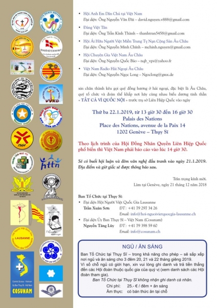 Trân trọng kính mời. Làm tại Genève, ngày 21 tháng 12 năm 2018